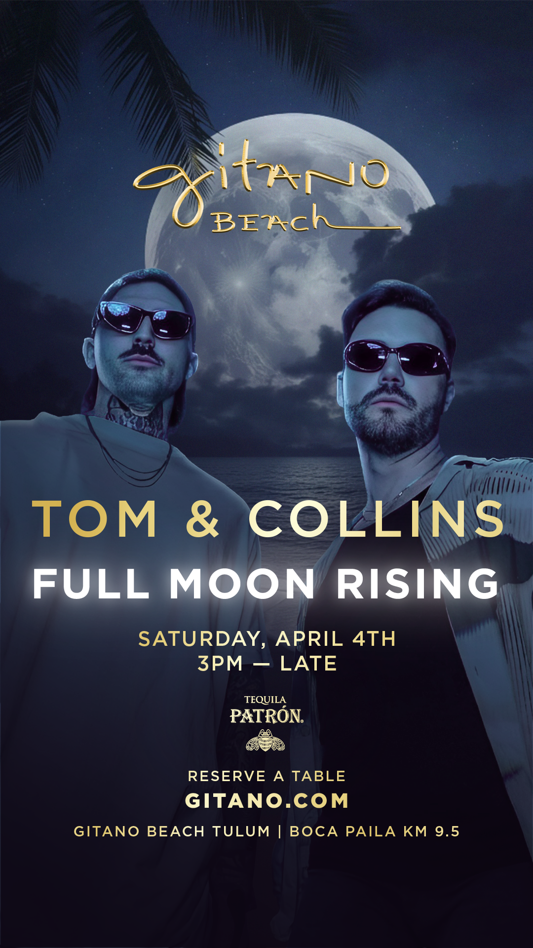For this first edition, Tom & Collins take over the decks, bringing their signature sound to the shores of GITANO BEACH.