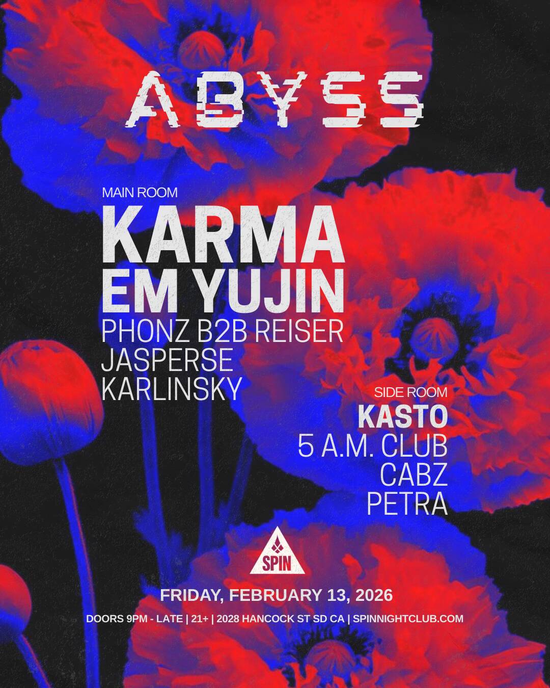 Mau5trap label artist KARMÅ, a classically trained composer and multidisciplinary artist who blends ethereal vocals, hypnotic rhythms, and high-octane techno, headlines the night.