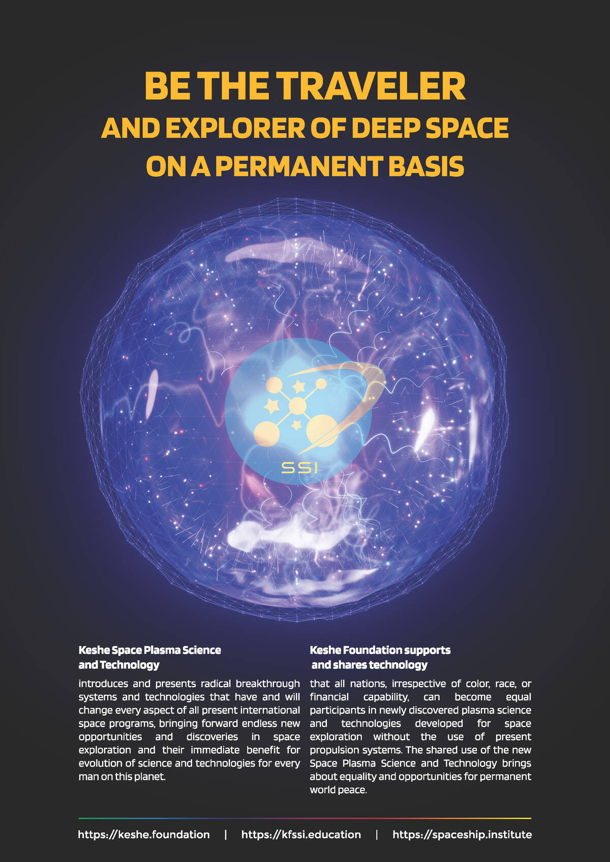 Keshe Space Plasma Science and Technology introduces and presents radical breakthrough systems and technologies that have and will change every aspect of all present international space programs, bringing forward endless new opportunities and discoveries in space exploration and their immediate benefit for evolution of science and technologies for every man on this planet. Keshe Foundation supports and shares technology that all nations, irrespective of color, race, or financial capability, can become equal participants in newly discovered plasma science and technologies developed for space exploration without the use of present propulsion. The shared use of the new Space Plasma Science and Technology brings about equality and opportunities for permanent world peace.