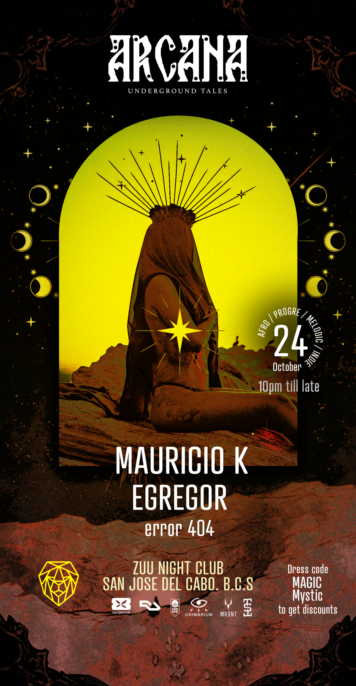 Immerse yourself in a magical Night under the sky and stars in San Jose! Get ready to live a musical experience, where the tropical breeze merges with the enveloping rhythms of electronic music. Join us for a party full of positive energy and mystical vibes.