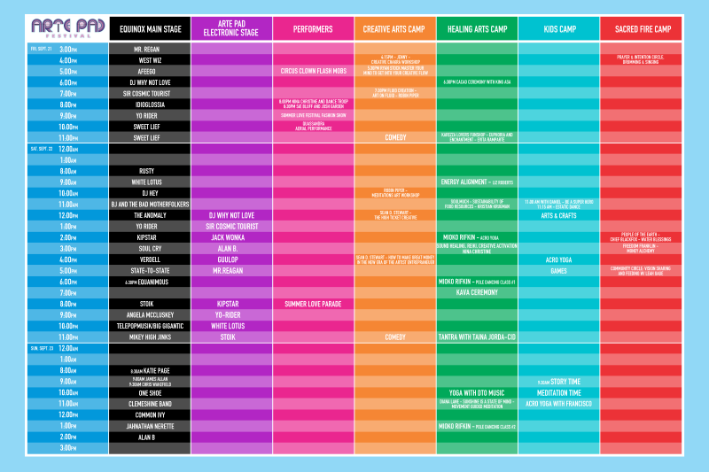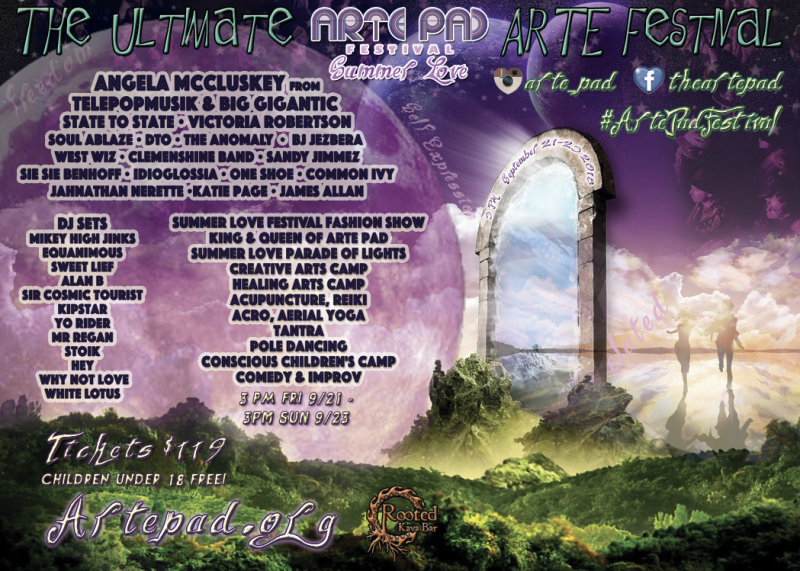 Arte Pad Summer Love Festival Sept 21-23 celebrates the Fall Equinox, which spiritually represents the height of empowerment, love, abundance!