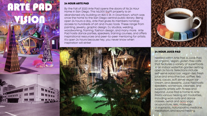 Arte Pad draws together musicians, artists, designers, and the creatively inclined of So Cal with a vision: to renovate the former San Diego central library into a 24 Hr artist megaplex--five stories and 145,000 sq/ft of creative inspiration!!