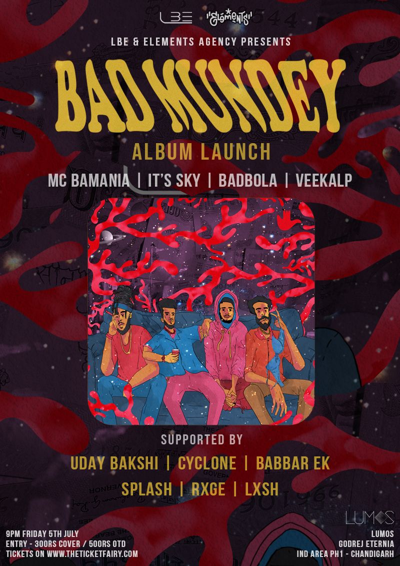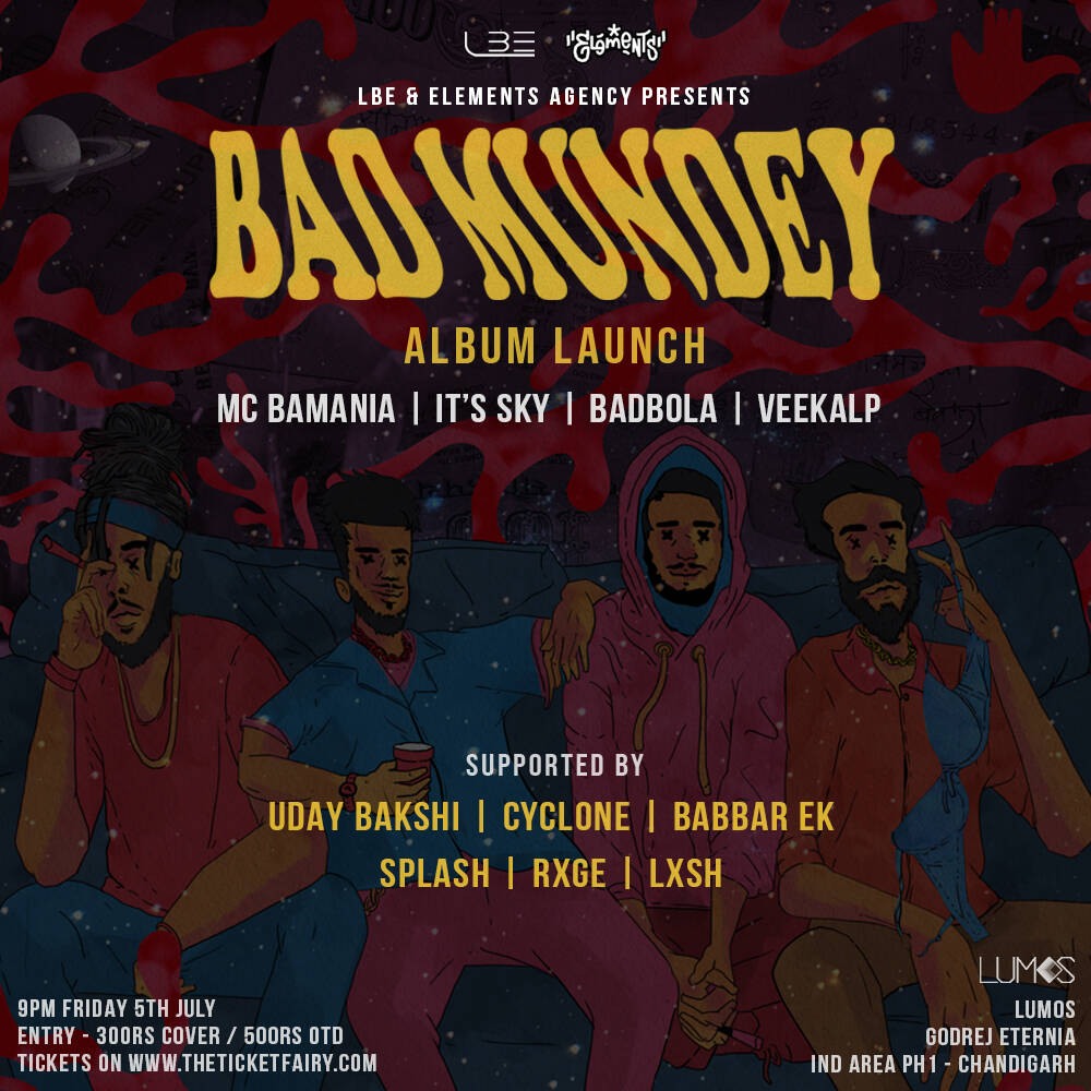 Bad Mundey - LBE self titled debut album drops Saturday 6th July - to celebrate we're throwing an album launch party at Lumos Coco in Chandigarh with a fat line up of support from the underground hip hop scene.