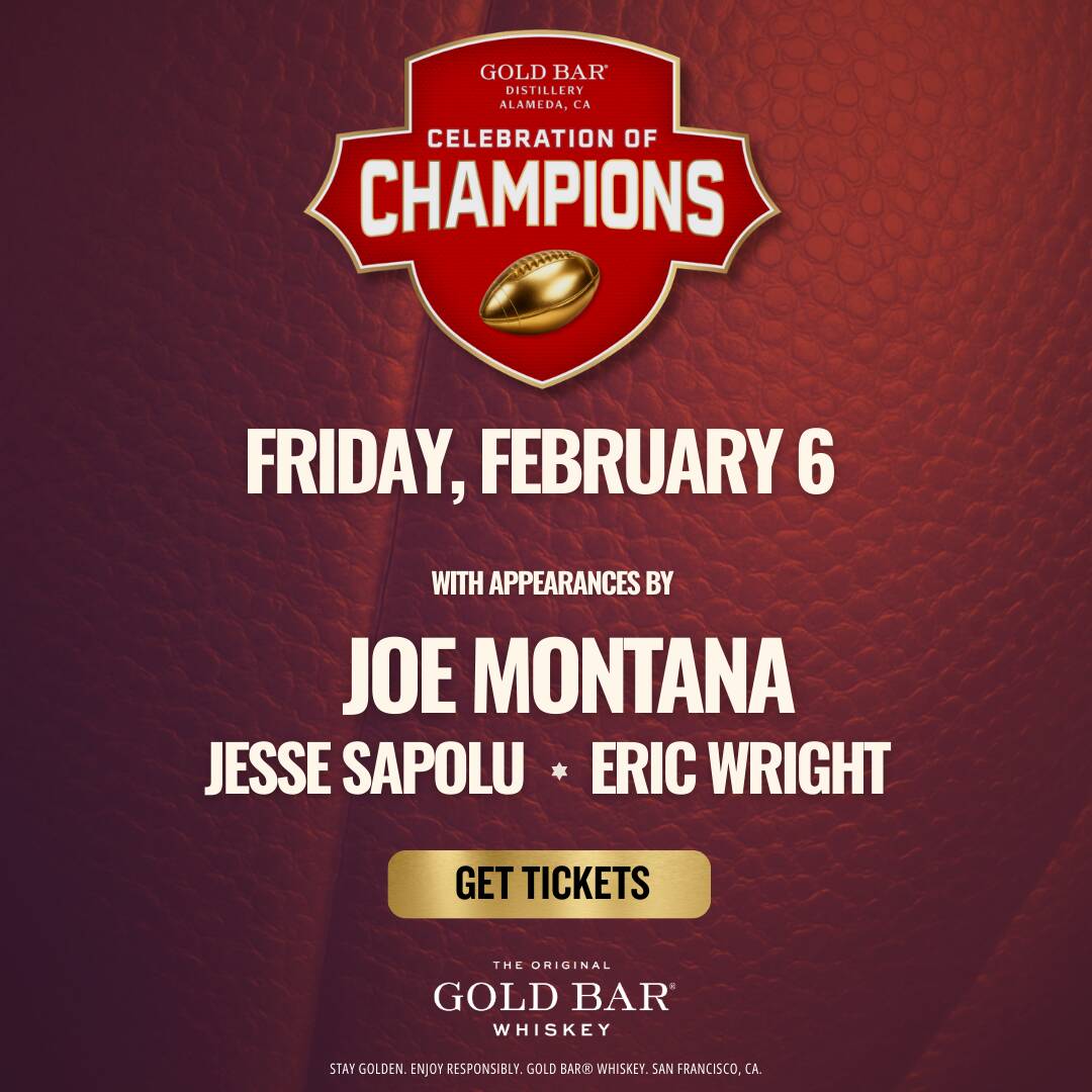 Friday at Celebration of Champions kicks off the East Bay’s Big Game Weekend with a high-energy, all-ages fan experience at Gold Bar Distillery in Alameda, February 5–7, 2026. Great for the whole family.