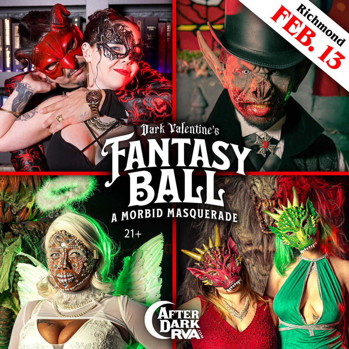 Dark Valentine's FANTASY BALL: A Morbid Masquerade is proud to be presented by After Dark RVA – with entertainment by Dollz Entertainment.