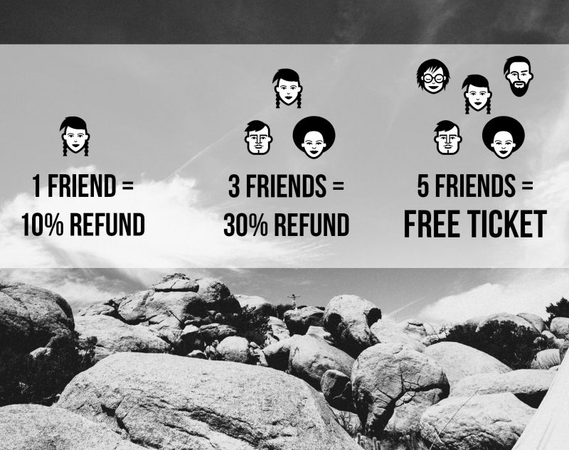 After you purchase your ticket you will get your own code to share with friends and get up to 100% of your money back when they buy tickets. Details below...