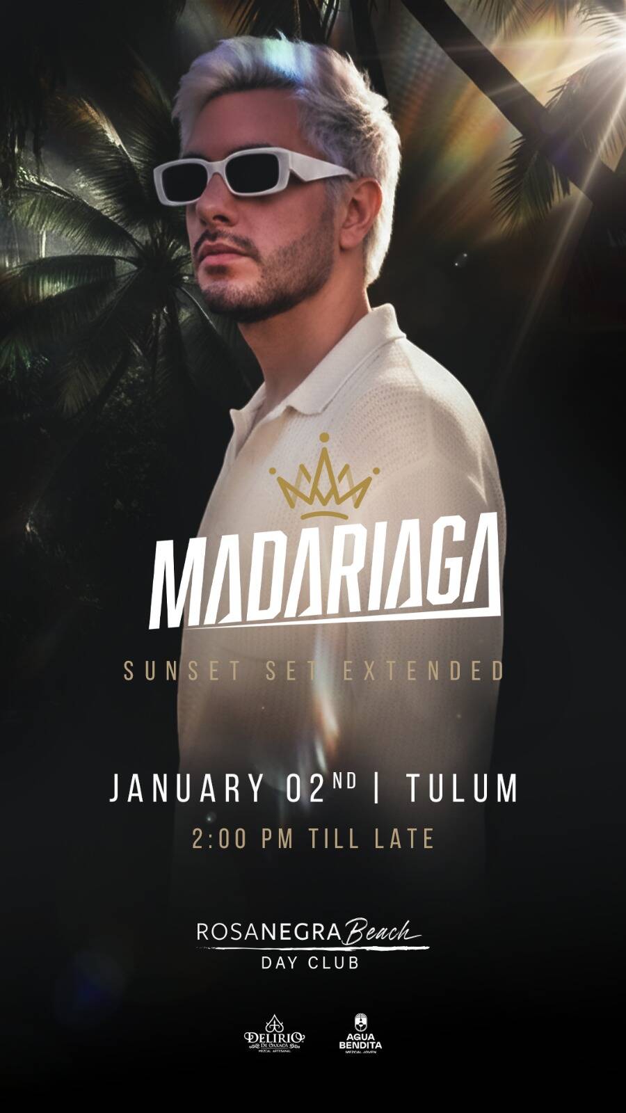 DJ Madariaga takes over RosaNegra Beach Tulum for a vibrant daytime experience where music, energy, and the ocean set the rhythm.
