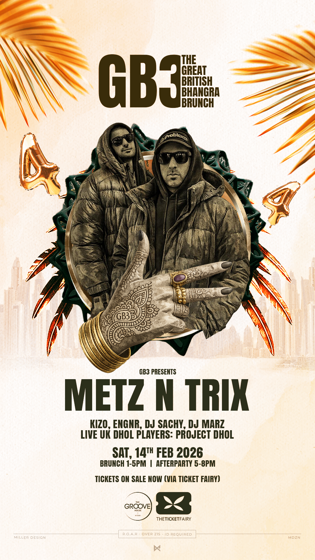 Four years deep, GB3 returns to celebrate its biggest chapter yet. A brand-new home at Groove House by Hitchki, Dubai Downtown, a fully refreshed brunch menu, elevated cocktails, and a line-up that defines British-Desi culture.