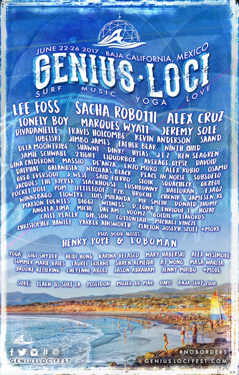 For 2017, Genius Loci will continue to be a carefully curated intimate event complete with a fantastic music lineup, yoga taught by amazing instructors, environmental workshops, and surf lessons.