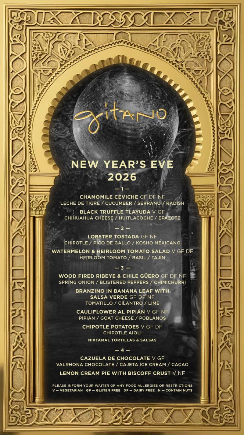Preferred Access : Skip the lines and dive right into the celebration. Unlimited Open Bar: Top-shelf spirits and our signature mezcal cocktails. Dance the Night Away: Immerse yourself in the vibrant atmosphere, music, and dancing that GITANO is known for! Timing: General Admission from 10:00 PM Dress Code: Black Glamour and Antique Gold – dress to impress!