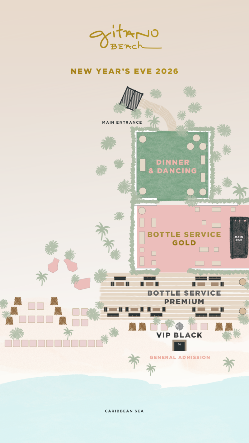 Includes: - VIP Access : Skip the lines and step straight into the celebration • Special 4-course menu from 9:00 PM • $5,000 MXN credit for bottle service • Prime BEACH LOUNGES table , near to the DJ booth • Reserved seating for the entire evening