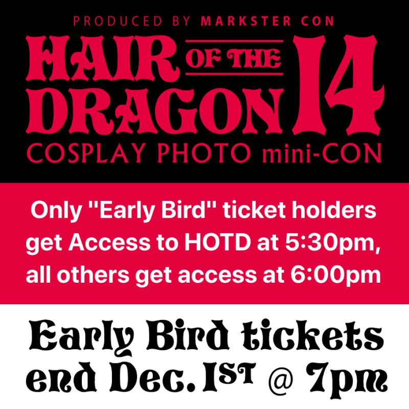 Join us for a night filled with creativity, new connections, and unforgettable photos. Whether you’re looking to make lasting memories, upgrade your cosplay portfolio, or just enjoy a fun, safe, and welcoming environment, Hair of the Dragon is the event for you!