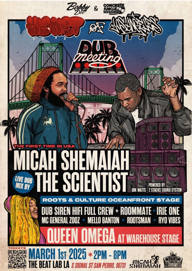 Heart of Los Angeles will also be blessed by the positive vibrations of Dub Meeting powered by Dub Siren Hifi along the beautiful waterfront of San Pedro, CA. The stage will boast the first time US performance of Micah Shemaiah live dub mixed by The Scientist and performances from the full Dub Siren crew featuring MC’s General Zooz, Mello Banton, Rootsman, and Ryo Vibes.