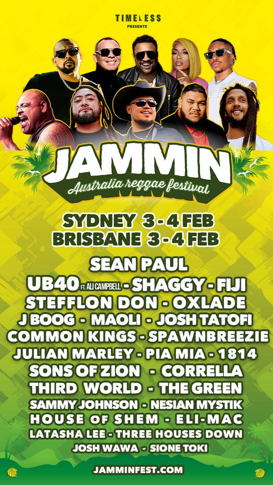 Reggae superstars Sean Paul and UB40 ft Ali Campbell will headline the 2024 festival, complemented by international artists Shaggy, Julian Marley, Fiji, J Boog, Third World, Common Kings, Maoli, Spawnbreezie, The Green, Pia Mia, Latasha Lee, Josh Wawa, Eli Mac and Sione Toki. New Zealand musicians Sons of Zion, Sammy J, Nesian Mystik, House of Shem, 1814 and Three Houses Down also join the line-up, adding the much-loved Kiwi reggae flavor to the event.