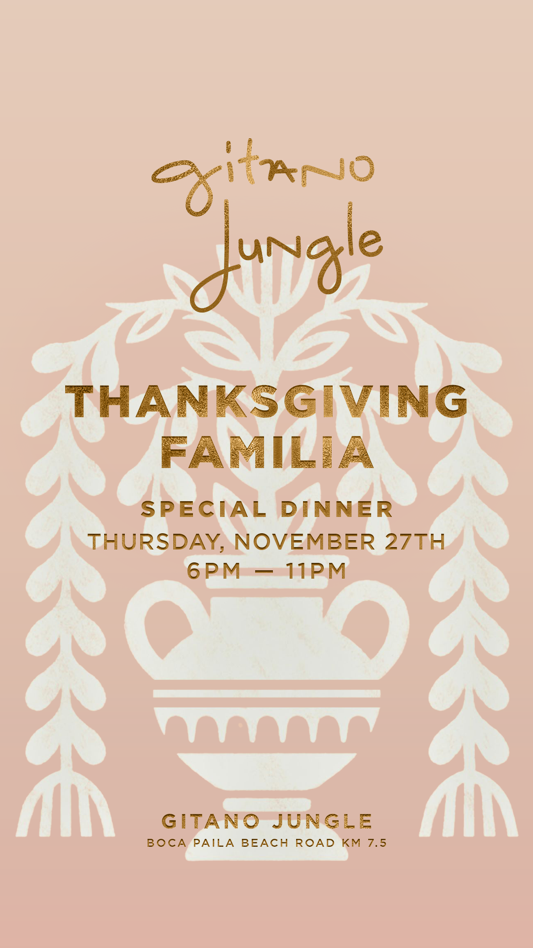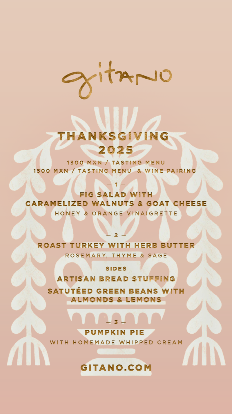Surrounded by flickering candlelight and the rhythm of the night, enjoy a three-course Thanksgiving feast crafted with GITANO flair, seasonal ingredients, bold flavors, and a touch of tropical mystique from 6PM to 11PM. As the evening unfolds, sip mezcal cocktails, dine beneath the stars, and let the music carry you late into the night.