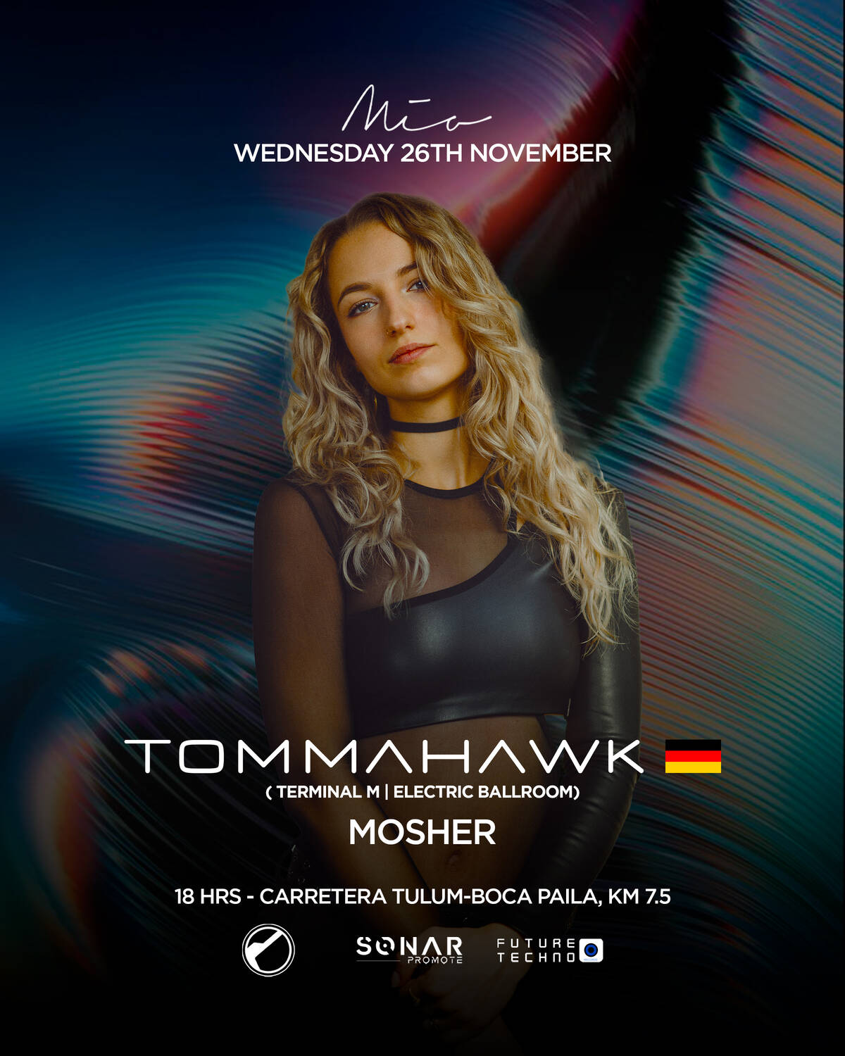 Join us in a New experience full of magic, emotions, good vibes, friends and the best music. With a special sound of Techno. Mia Tulum presents Hamburg-based artist Tommahawk as a rising force in the international techno scene, known for her emotional, driving sets and contagious energy behind the decks. Her journey began