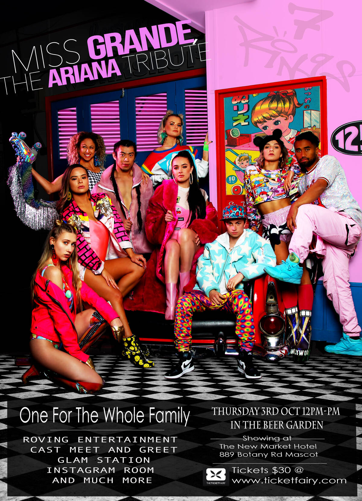 Miss Grande is the newest instalment from Producer and Choreographer David Camm of Entertainment Works Australia. This 90-minute production is sure to delight pop fans, young and old! This 90-minute production show, stars the Ultimate Sydney Pop Diva herself Claudia Bowen and an all -star cast of Australia’s most sough after commercial dancers. The cast have performed behind the world’s biggest pop stars and productions, and are now coming to a stage near you.