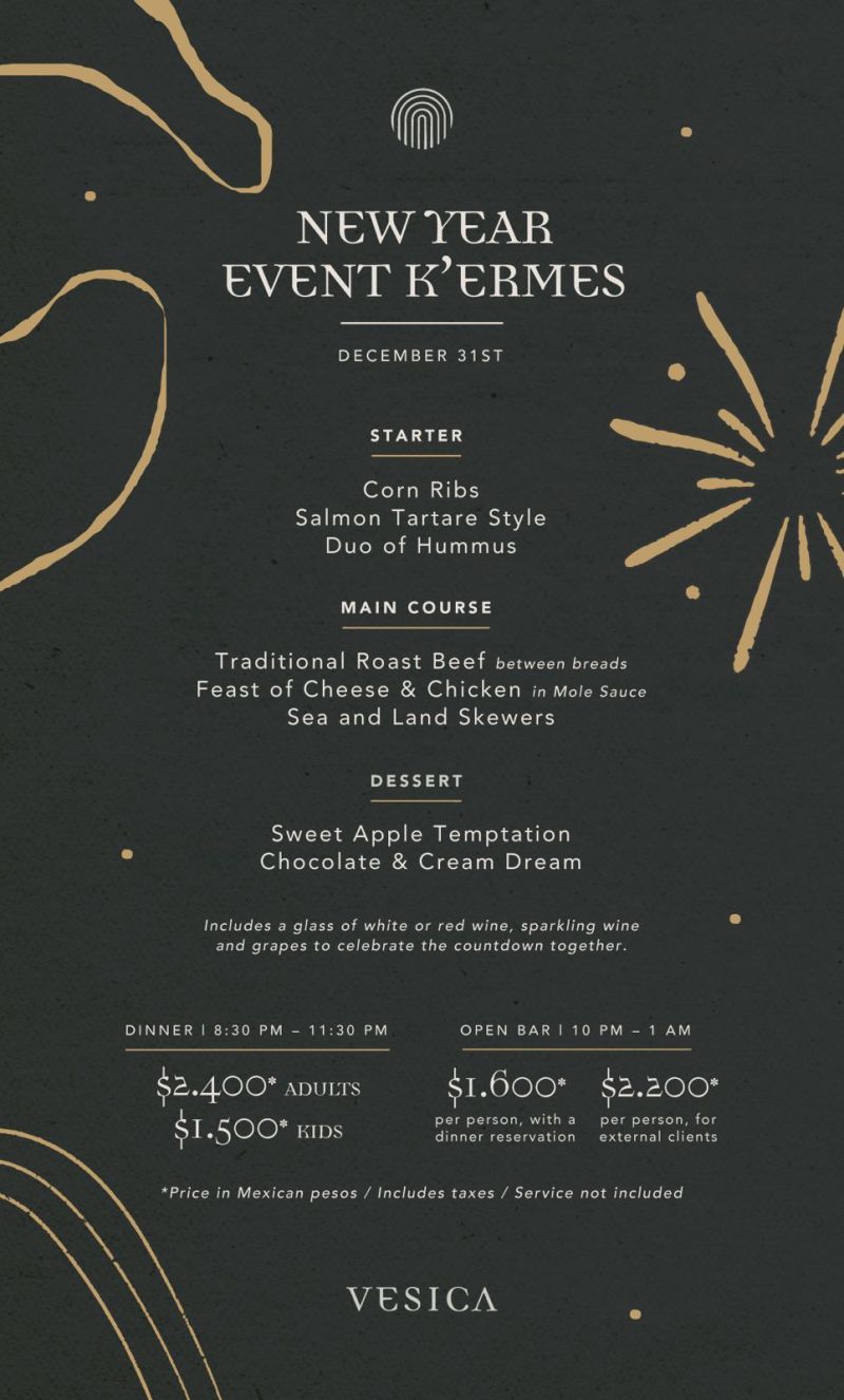 Ofrecemos: una exquisita cena k´ermés de 8 platillos por persona ,el brindis de la nueva entrada de año , que puedes combinar con una barra libre de mixología nacional e internacional.