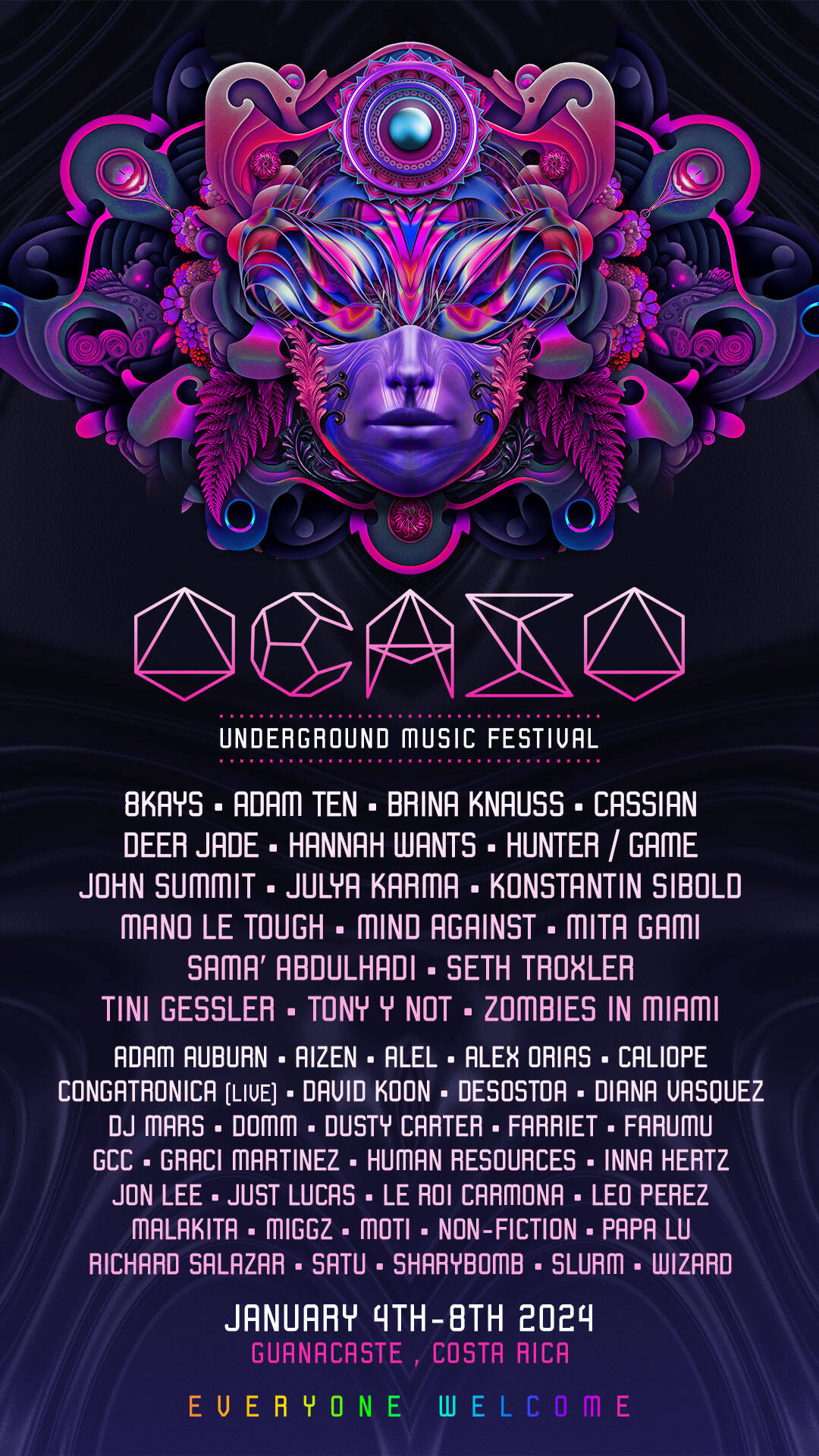 Get ready to experience the ultimate celebration of underground music in the heart of Guanacaste, Costa Rica, as the Ocaso Underground Music Festival takes over this stunning destination. Set to unfold from January 4th to 8th, 2024, our festival boasts a lineup featuring some of the most influential names in the underground music scene.