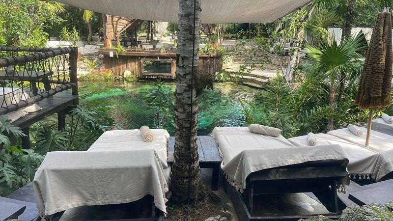 Dance and swim in crystal-clear turquoise waters, nestled in lush Tulum jungle surroundings.