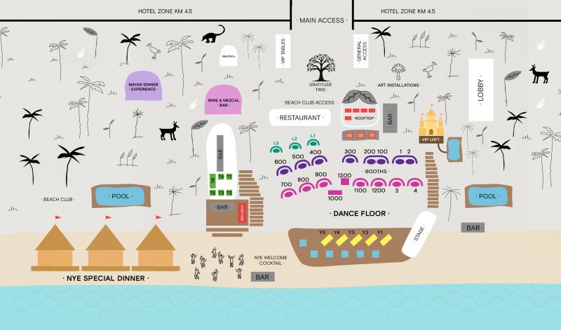 🏡 This experience includes a three-night stay and NYE ticket access for two people.. 📲 Please contact us via WhatsApp at +52 984 116 3774 to receive guidance and your confirmation code .