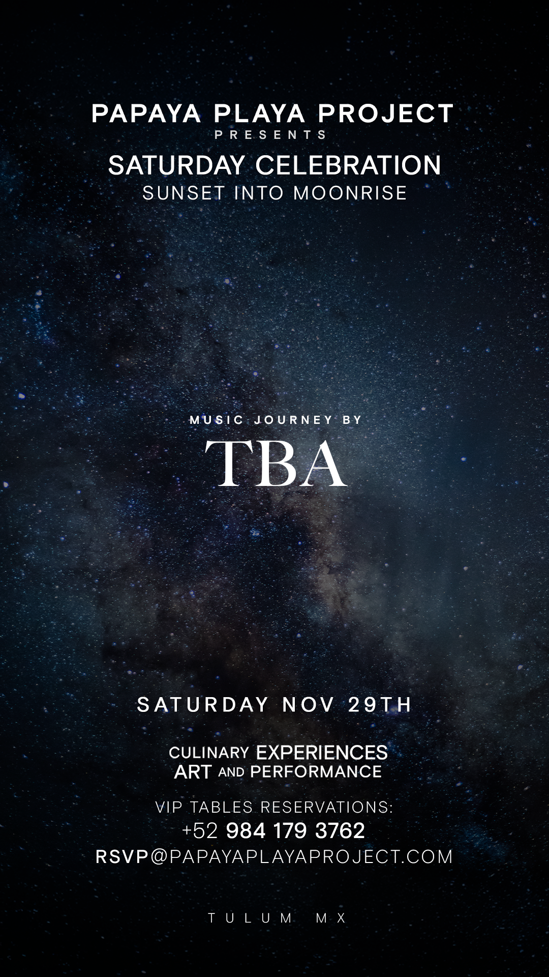 Some things in life are best experienced with trust and an open heart—this is one of them. With the Trust the Vibe Ticket, you secure your spot at an unforgettable night of music and magic at Papaya Playa Project, even before the lineup is revealed.