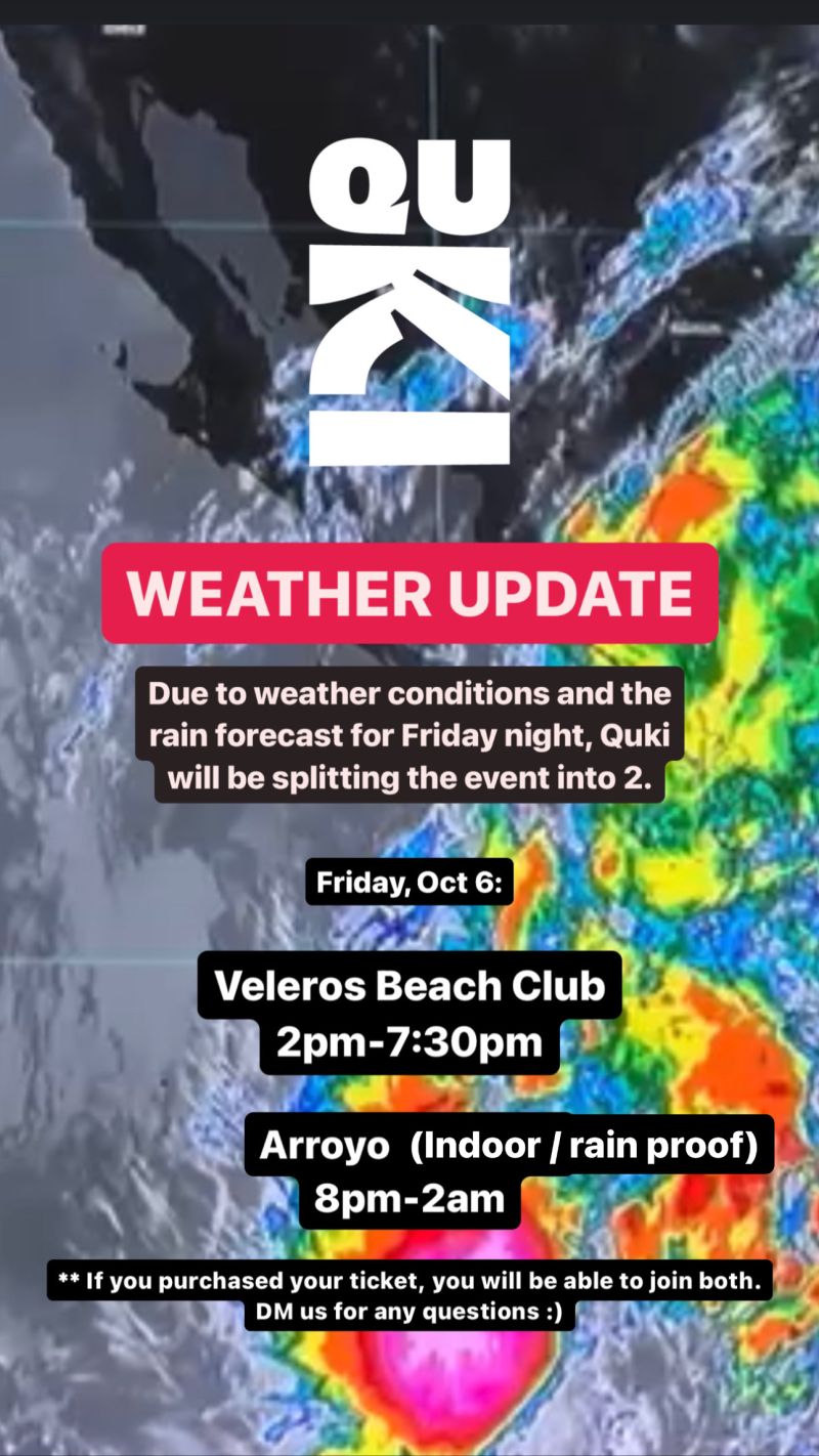 Due to weather conditions, the Quki tonight will need to change venues for the night time.