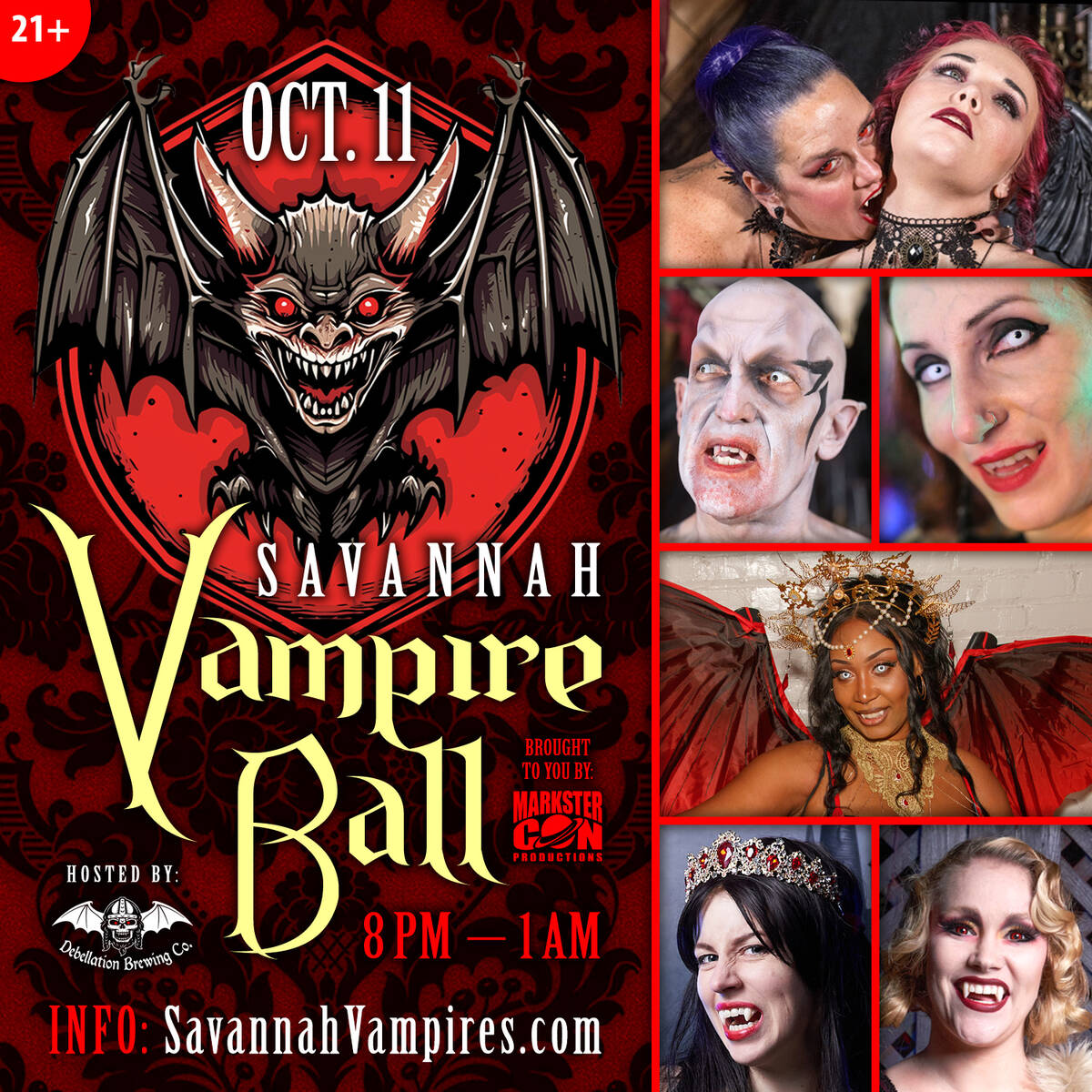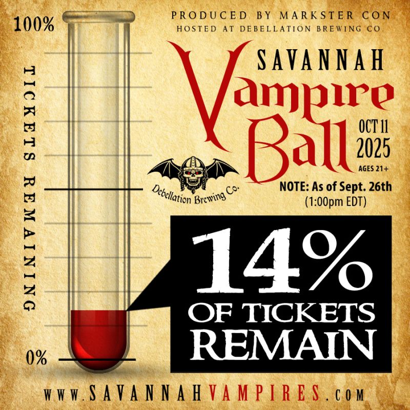 On Saturday, Oct. 11th, 2025 join your fellow creatures of the night as it'll be time to ascend again into the Savannah area for a night like no other. Grab your capes, sharpen your fangs, dust off your boots and come quench your celebratory appetite as Markster Con's VAMPIRE BALL returns for a 6th year.