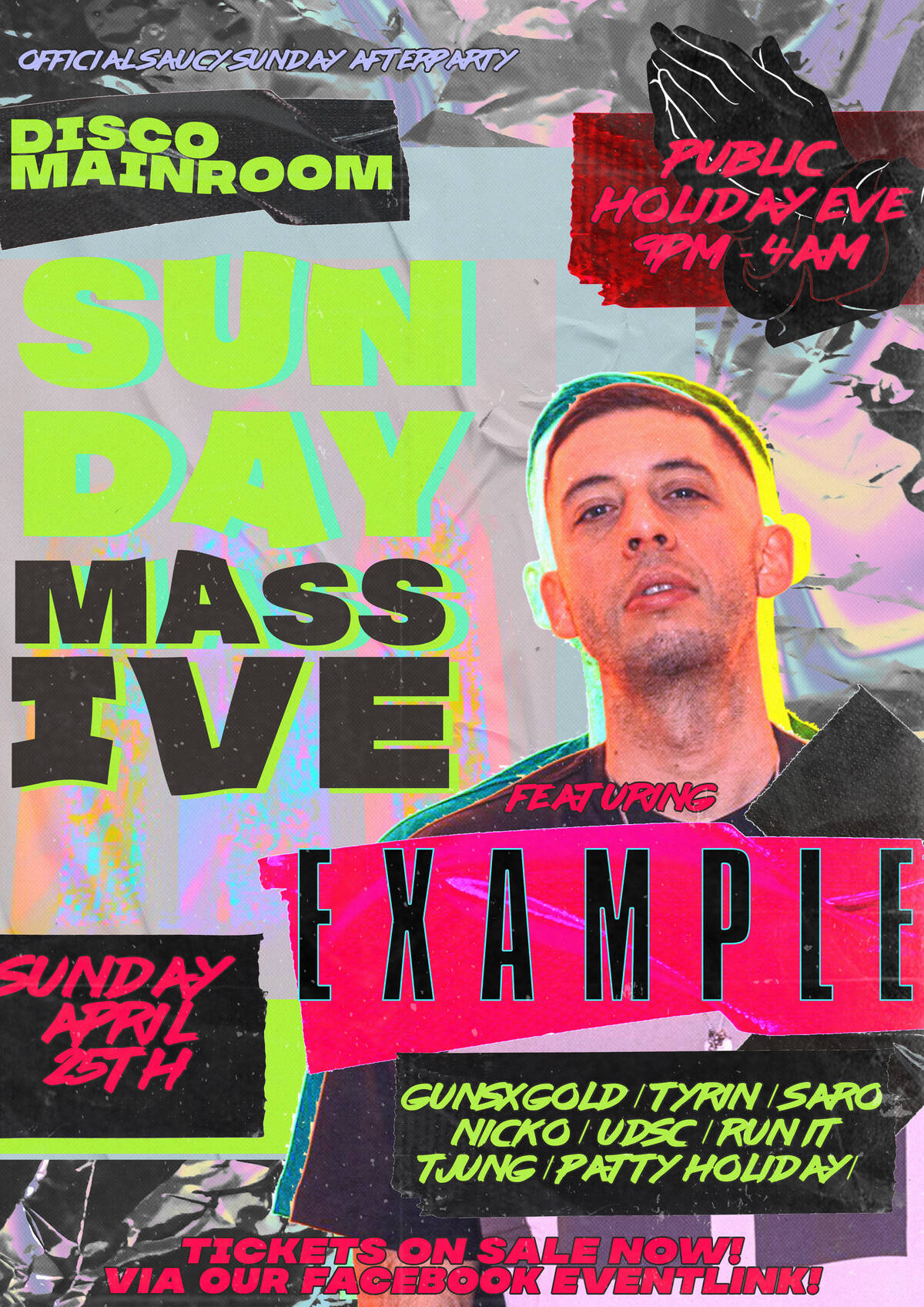 Sunday Mass is gonna be MASSive this April 25th with UK Superstar Rapper & DJ, Example headlining the long weekend.