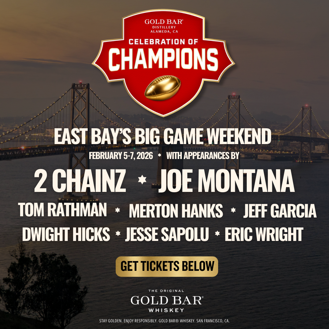 Celebration of Champions is the Official East Bay Big Game Weekend Fan Fest and Festival, bringing together football legends including Joe Montana, live music headlined by 2 Chainz, food, and immersive fan experiences over three unforgettable days at Gold Bar Distillery in Alameda, with more artists to be announced soon.
